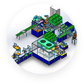 • 中型产品的工位设计一般与滚筒线、链板线、托盘线方式进行连接。